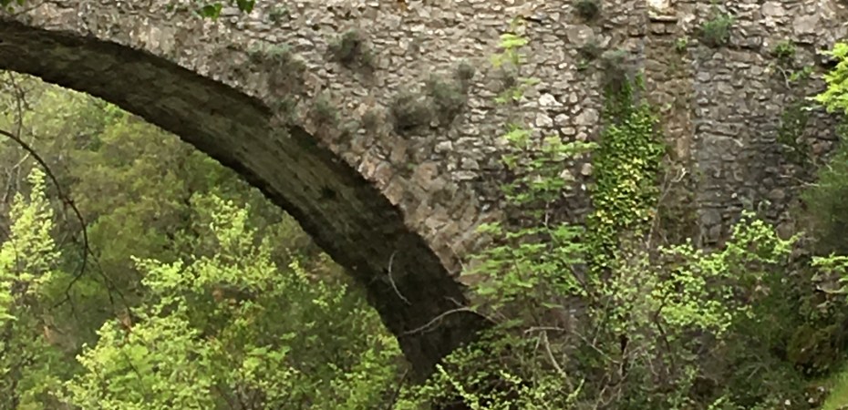 As we were sitting in the rest area under the Millau viaduct, Carolyn foolishly said to Chris, “Shall I drive the next part?” So far Chris had done all the long-distance road trip driving and having to deal with double stresses of manual gear shifts on the wrong side, and Carolyn’s interpretations of the Google map instructions … he readily agreed to take the passenger/navigator role. We moved on towards Cirque de Navacelles, our stop for the night, in a beautiful valley carved by a river many hundreds of years ago. Our ride was careful but uneventful as we moved from highways to byways, and then to narrow steep winding roads descending and ascending valleys and hills and gorges. We stopped at the “Belvederes des Blandas” for our first view of the valley below from the northern edge. From here the road narrowed again, stone walls marking the edges as we switchbacked steeply down into the valley. We were very thankful it was a quiet route and we didn’t meet any traffic coming up towards us. Our accommodation for the night was comfortable and, not being peak season, quiet. Our hostess hadn’t been to NZ but had worked with kiwi celebrity chef Peter Gordon in one of his London restaurants in a past life. We had arranged to have dinner here as there were no other options; at our dinner table were two Frenchmen, taking a weekend away from wives and family to walk the trails of the valley, and a Swiss woman, also enjoying the hiking of the area.