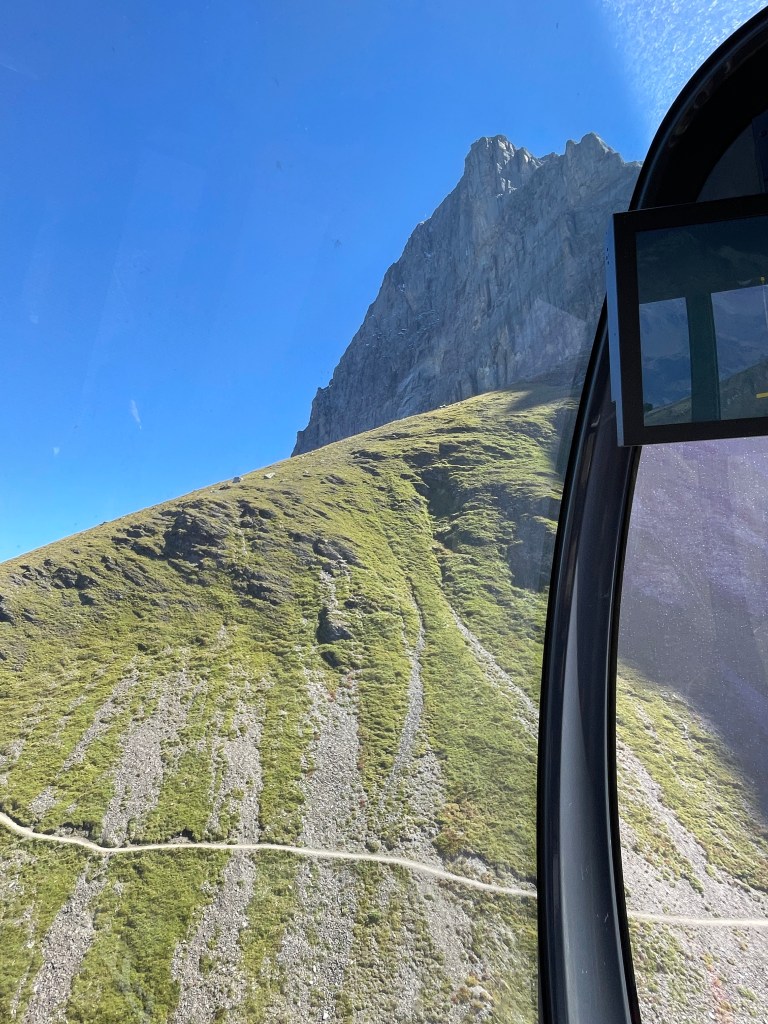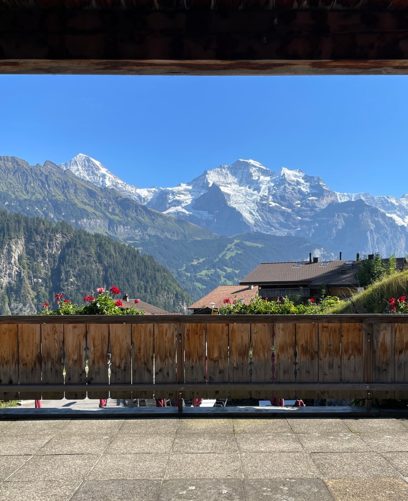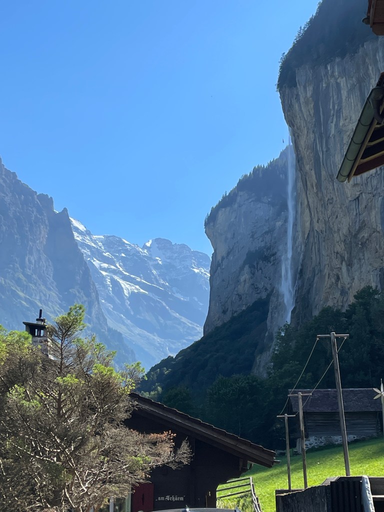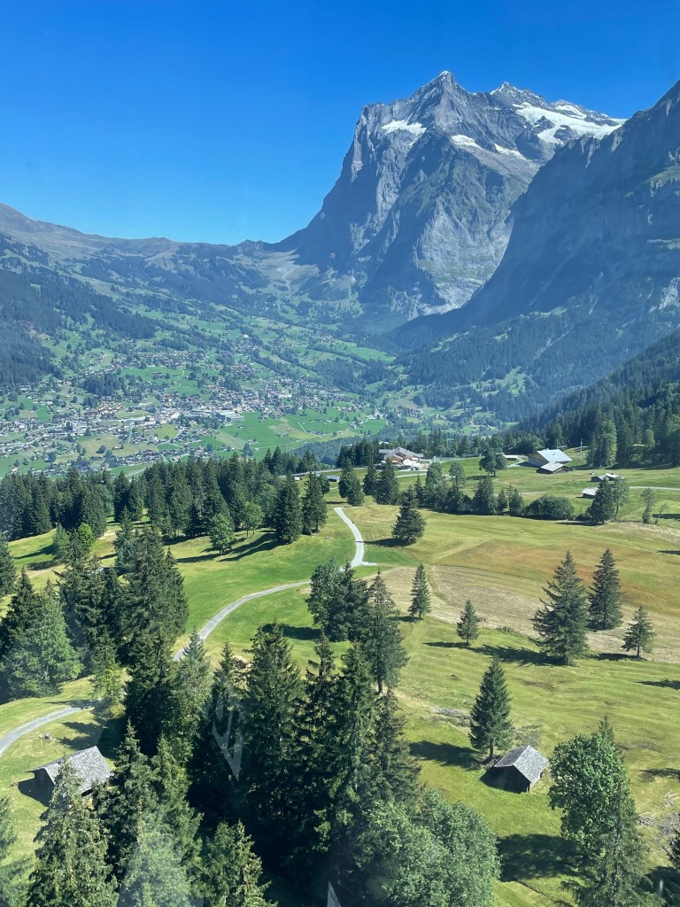 From Chamonix, we drove east into Switzerland, to the Lauterbrunnen valley. Our B&B was just out of the main tourist town in the village of Isenfluh. Getting here was a teeth gritting exercise as we climbed up switchbacks and into a one lane tunnel that corkscrewed upwards to the village. There were passing spots in the tunnel but it was certainly an adventure getting there. But our room and terrace had the most amazing view of the Jungfrau, it was worth it! Lauterbrunnen itself lived up to and exceeded the Instagram pictures we had seen, it was just gorgeous with a waterfall dropping down a sheer cliff to the valley floor, green pastures, “chocolate box” houses … and the mountains! We enjoyed every part of this location, although it was still very very busy with tourists. Originally I had wanted to do the train ride up to the “top of Europe” to the Jungfrau but at over NZ$700 for us both it really wasn’t in our budget. We opted instead to take the train to Klein Scheidegg where we could walk, take in the views and get close to the Eiger, then a gondola down to Grindelwald, passing across the face of the Eiger and lastly a train back to Lauterbrunnen for about a third the cost. It was a super day, with amazing mountain views at each stop, the cowbells in the valley and the green pastures below. This place exceeded all I had hoped for, it was just magical.