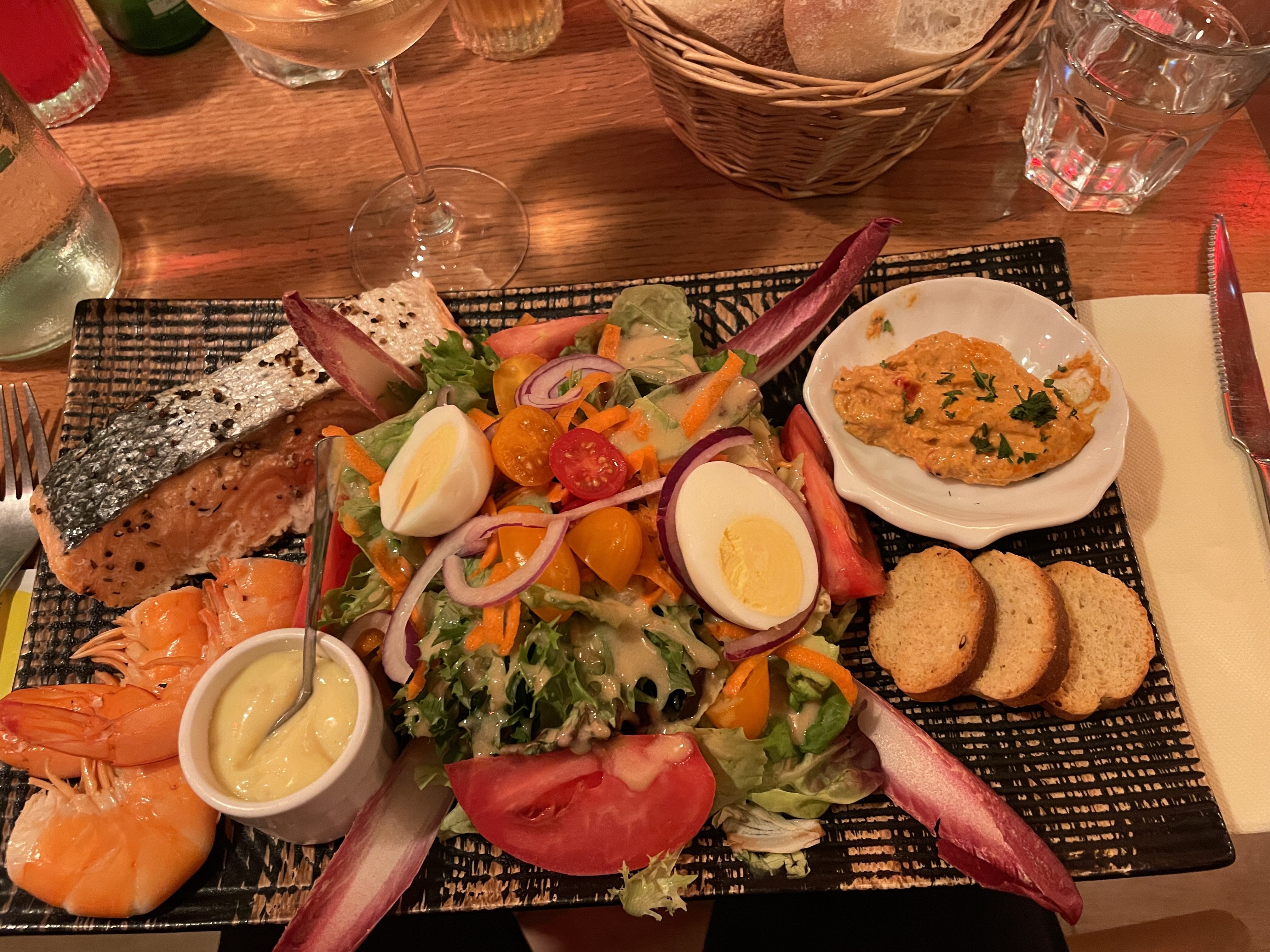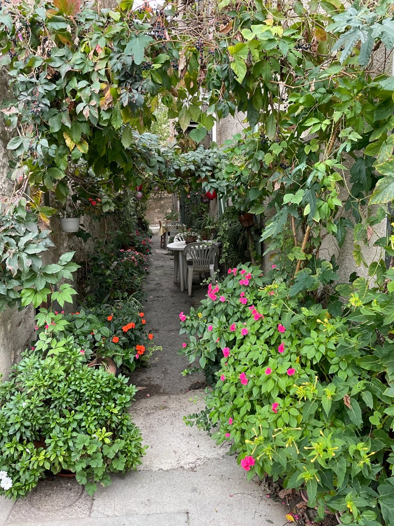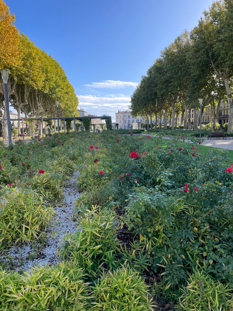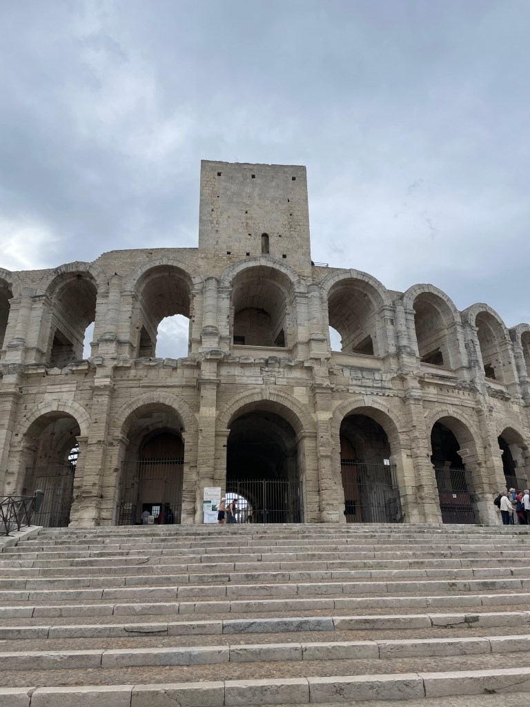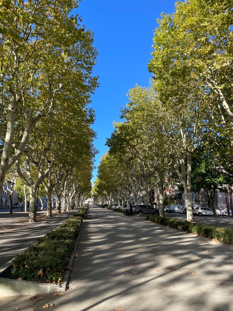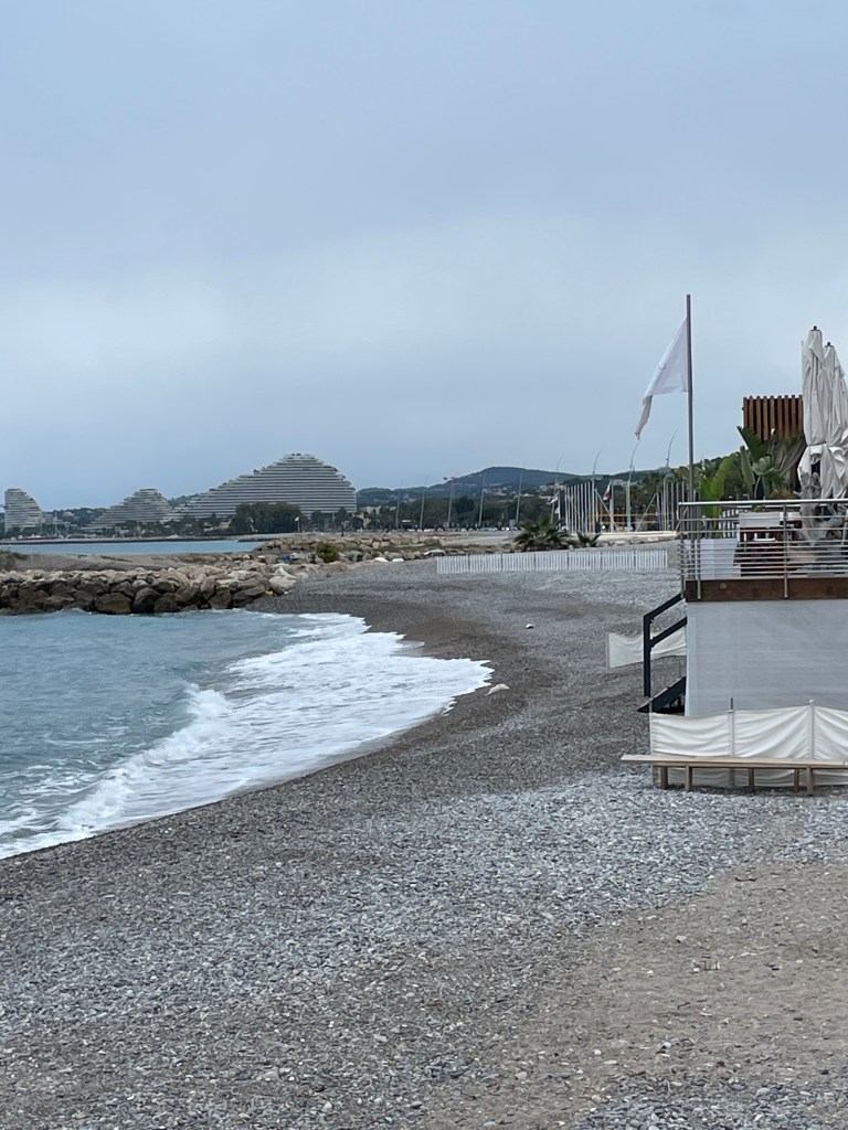 Leaving Italy, we hoped to enjoy a final Italian pizza before we crossed the border, and arrived in a small town looking for a good pizza restaurant. Google advised us of one nearby but, arriving at the location, discovered that it didn’t exist any more. We turned up another street and saw a pizza sign and decided that would do for us, but sadly we were let down in so many ways… firstly, after asking for a specific type of pizza that we had enjoyed previously, and pointing to it on the menu so there was no confusion, we were then served a calzone with completely different fillings. The ambience of the cafe was average to say the least, service was barely acceptable, but the icing on the cake was to be charged the “service charge” that usually meant you have been served bread with your meal, no bread, no special service! Remonstrating with the owner, her Italian explanation was that because we sat down at her tables, she could charge us. We didn’t have the Italian or the inclination to point out that we didn’t even get what we asked for – it was a very disappointing farewell to Italy! However, crossing into France was such a relief – as soon as we crossed the border, the traffic chaos calmed and we felt much more relaxed as the drivers seemed to be more obedient to the road rules and speed limits. We enjoyed the views of the coast from up high as we wound our way towards Nice. We had plans to revisit Cafe du Cycliste on the waterfront – we had been here in 2018 and their cycling apparel is amazing (and expensive) but I owed Chris a birthday present, it was good for him to be treated. The traffic in Nice was not crazy and we enjoyed a scenic drive around the coastline towards our overnight stop at Cagnes-sur-Mer, and then to St Remy de Provence for another night. Our next day’s travel took us via Arles and further around the coastline to the tiny village of Peyriac-de-Mer. These stops allowed us to enjoy wandering the coast and to savour french cuisine again. The weather was starting to cool slightly, it was mid-autumn by now and temps were in the low 20’s (C), but definitely still comfortable enough for shorts.