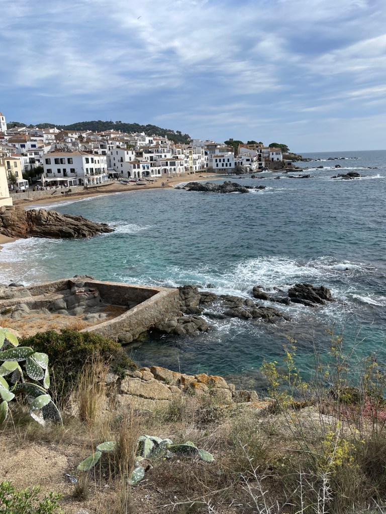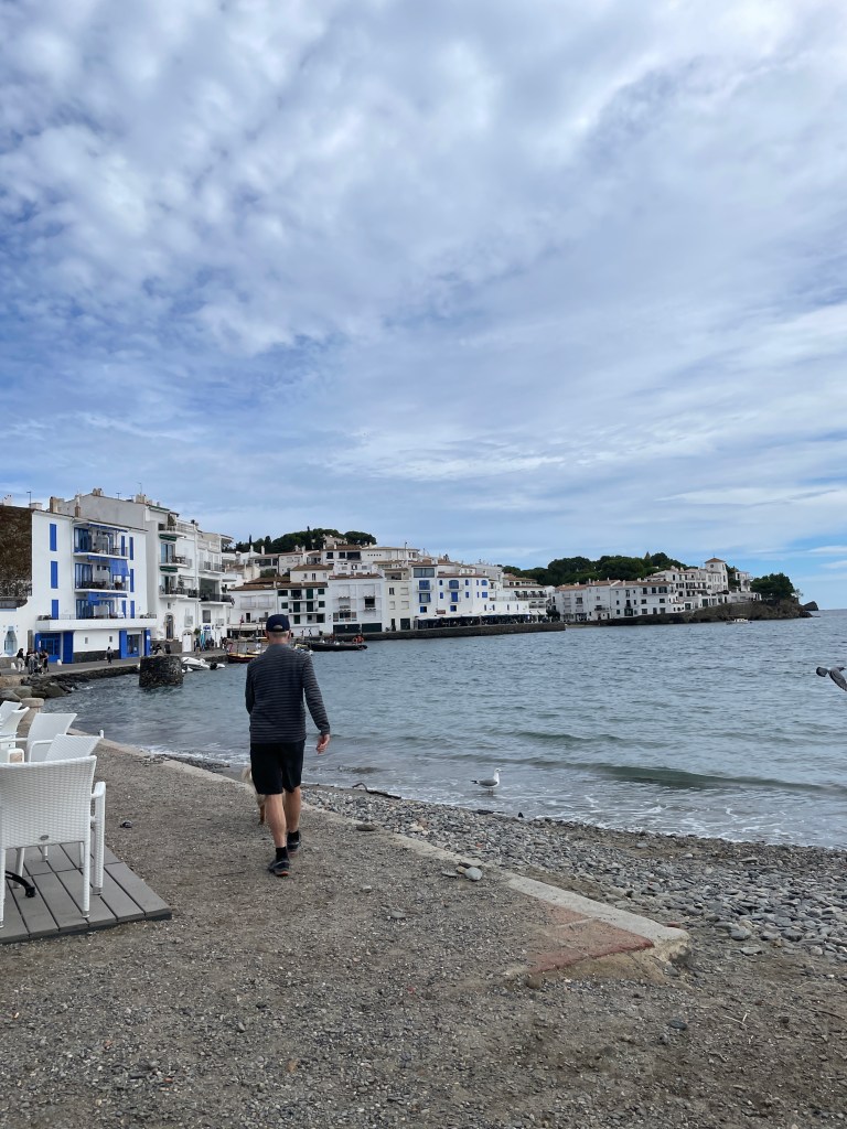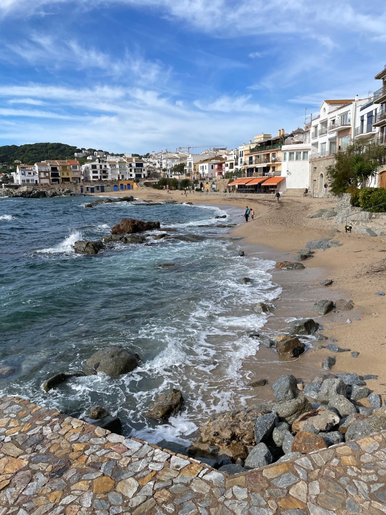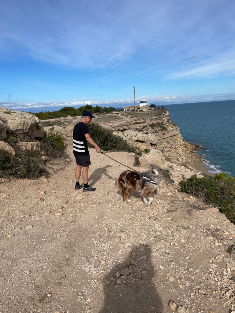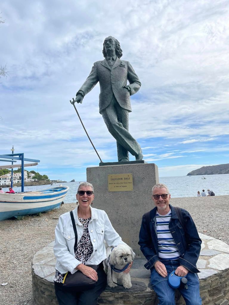 It is always great to be selected for a housesitting assignment, and seeing one in southern Mediterranean France advertised while we were in England, we were sure it would fit with our itinerary for our final month in Europe. We were welcomed to arrive at our temporary home, half an hour out of Perpignan, by Willow’s family. The village of Villelongue-de-la-Salanque was small and the house very old and quirky, but comfortable. Willow was a wonderful companion, able to walk off lead in the local countryside, and especially happy to run free, ball chasing on the nearby beaches. She absolutely loved the water, but even better, she loved rolling in the sand afterwards! We enjoyed 10 days here, able to explore the region finding walks with amazing views along the coastline and inland with our furry friend, with a couple of excursions south across the border into Spain. One of these was to catch up with British housesitting friends Sandy and Rob who we first met in NZ in 2018, then in Mexico in 2019 and, although our paths didn’t quite cross in England this year, we finally managed to connect in Spain.