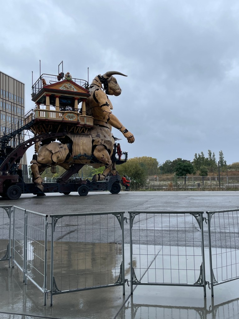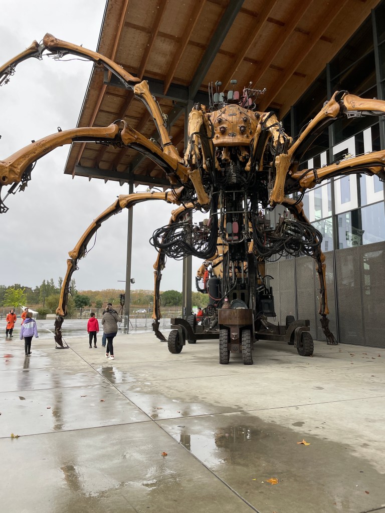 Our overnight stop was Limoges, and we arrived in time to have a quick wander of the main town before the night closed in. On our way out of town the following day, we had to stop and view one of the Limoges porcelain warehouses – such stunning wares but sadly, we couldn’t indulge. Onward then to Nantes, via Cognac and La Rochelle for brief stops to view these lovely towns, far too quickly. Our day in Nantes was again very wet but the town offered much to see, including another giant machine structure. Ultimately, we were headed for another brief housesit in the Loire Valley, and were thankful for a sunny day to travel via a couple of stunning chateau in Angers and Villandry. The gardens at Villandry were stunning to view from various view points. We got a chance to wander through Tours – being early November, the streets were fairly clear of the touristic buzz, but great for wandering and enjoying another beautiful French old town.