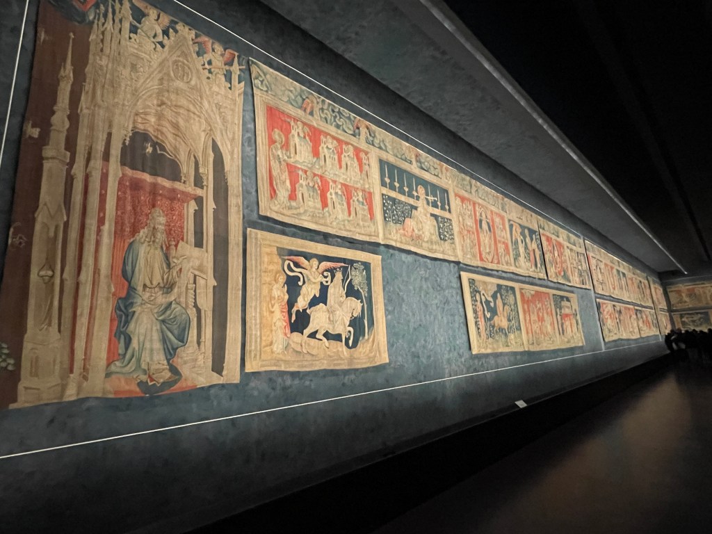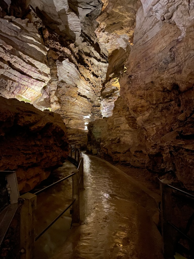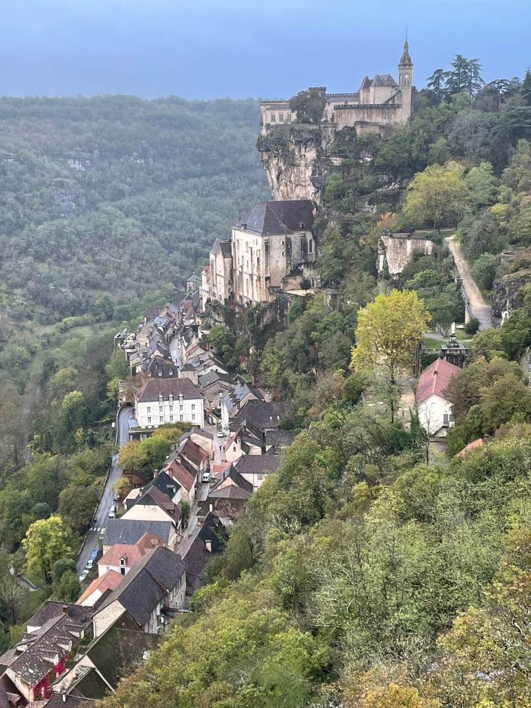 When we watched the Tour de France on TV in 2022, one of the amazing arrival locations was Rocamadour, and immediately it became a location we wanted to visit. We were able to slot it in as we headed north from Toulouse, driving country lanes and spying beautiful villages on our way. Rocamadour did not disappoint- our accommodation, although not in the Old Town, looked towards the castle on the “roc d’amador”. We arrived early evening in rainy weather so were thankful for dry weather, despite the threatening clouds, the next day to explore this amazing location. We started high at the top of the castle and wandered downwards to the old town, enjoying the Sunday bells at the church and taking our time climbing back through the cobbled streets to our car, before starting off on our way north again. We had plenty of time, so planned a stop to explore the Gouffre de Padirac cave system. The brochure and online information gave no hint to the actual experience, which was well worth the entry fee, as we climbed down into the cavern below and moved into this amazing cave system, accompanied by the roar of the stream rushing along beside us. The paths were well formed and lighting gave us a great view of the rock formations and structures, until we arrived at an underground lake to take a boat ride across to explore another huge cavern deep below. We spent at least an hour (probably more) enjoying this natural feature before returning to the surface via a rickety elevator.