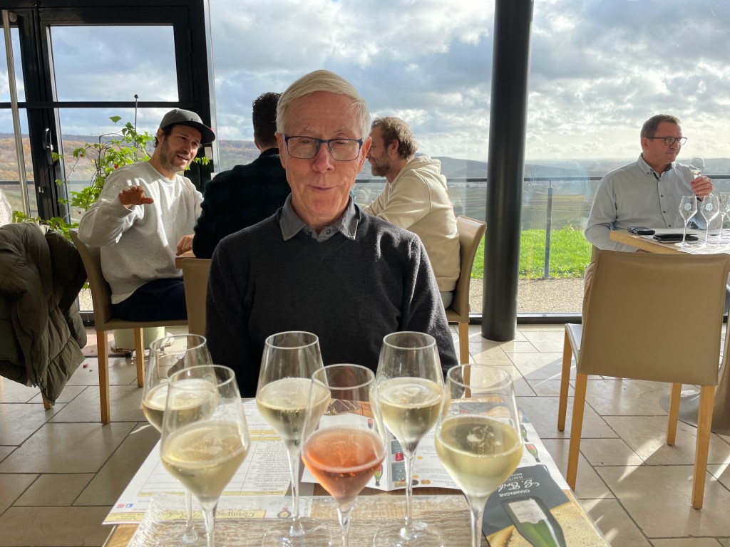 Our last gasp in Europe was to be Champagne, briefly tasted over 20 years ago, we decided we must spend a few days exploring in more detail. We found a lovely apartment in the centre of Ay to base ourselves for three nights. We could wander around the corner to a bakery, and around the village spotting champagne houses. We took ourselves on a day trip to Hautvillers and enjoyed a tasting at G Tribaut, splurging on a bottle to take home for our family Christmas, feeling somewhat cheap compared to the Belgians filling their cars with cases of Champagne to take home. This was a great end to our adventures in the UK and Europe – but there was one more treat to come on our way home…